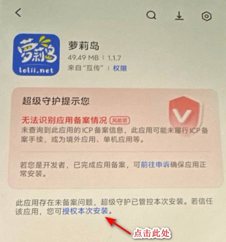 安卓用户请注意,由于该APP并未上架至应用市场,因此安装时需点击